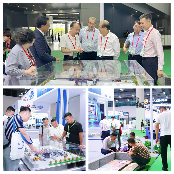 展會現(xiàn)場,泉工股份展示了ZN2000-2C全自動固廢制磚生產(chǎn)線的最新升級成果,重點(diǎn)展示了如何進(jìn)一步提高產(chǎn)品附加值,綜合利用固廢等原材料變廢為寶,全自動智能化生產(chǎn):透水磚、路緣石、仿石PC磚等多樣化產(chǎn)品的“泉工方案”。現(xiàn)場工作人員的耐心接待和細(xì)心講解,讓觀展客戶更好地了解固廢制磚、海綿城市理念,受到客戶的一致好評。