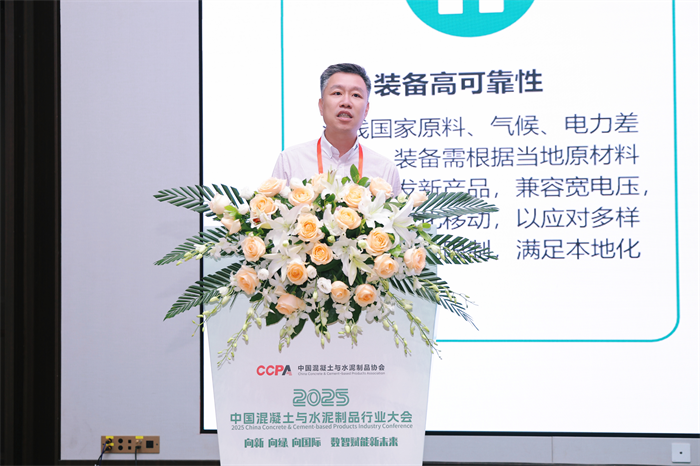 在第四屆中國混凝土與水泥制品行業(yè)共建“一帶一路”高質(zhì)量發(fā)展論壇上,泉工股份副總經(jīng)理傅國華發(fā)表《“一帶一路”基建需求下混凝土砌塊裝備技術(shù)全球化解決方案》主題演講。他結(jié)合企業(yè)在東南亞、中東、非洲等地的項(xiàng)目實(shí)踐,分享了“裝備+工藝+服務(wù)”一體化出海模式,提出以模塊化設(shè)計、遠(yuǎn)程運(yùn)維平臺和本地培訓(xùn)基地為抓手,幫助海外客戶快速形成高品質(zhì)砌塊生產(chǎn)能力,降低建設(shè)運(yùn)營成本,實(shí)現(xiàn)綠色低碳目標(biāo)。報告得到與會嘉賓的積極反響。